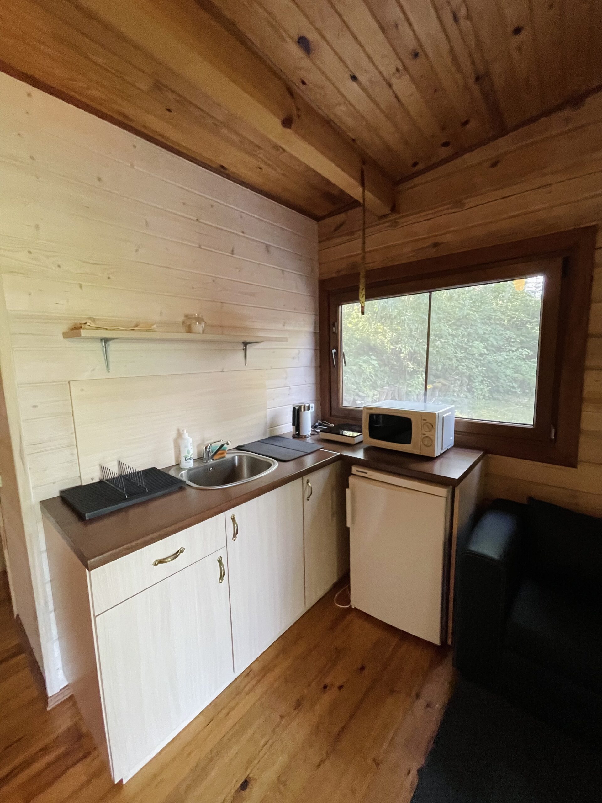 Rąstinis „studio” tipo ekologiškas namelis, su lauko terasa ir dideliais vitrininiais langais į ežero pusę, nuo ežero pakrantės nutolęs apie 30 m. Langai apsaugoti tinkleliais nuo vabzdžių. Puikus pasirinkimas draugų kompanijoms, šeimynoms, norintiems atitrūkti nuo kasdienybės ir pailsėti natūralios gamtos apsuptyje. Puikus pasirinkimas draugų kompanijoms, šeimynoms, norintiems atitrūkti nuo kasdienybės ir pailsėti natūralios gamtos apsuptyje.